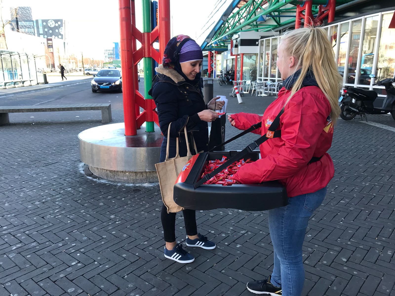 Stations sampling is de ideale manier om een grote doelgroep te bereiken. Tijdens deze actie werden Daim mini’s uitgedeeld. Onze Juicy Promotieteam toverde bij iedereen een lach op het gezicht.