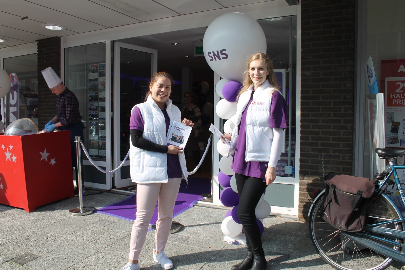 De consument doet dit niet zomaar natuurlijk, dus daarom deelden we flyers uit waar alle voordelen van de SNS-bank op stonden. Denk aan hele gunstige rente op je betaalrekening en drie dagen per maand rood kunnen staan zonder rente te betalen. Maar de knaller komt nog: je krijgt 50 euro gestort op je nieuwe betaalrekening als je dit jaar nog overstapt. Al interesse? Wees dan maar snel want deze actie is geldig t/m 31 december 2018.