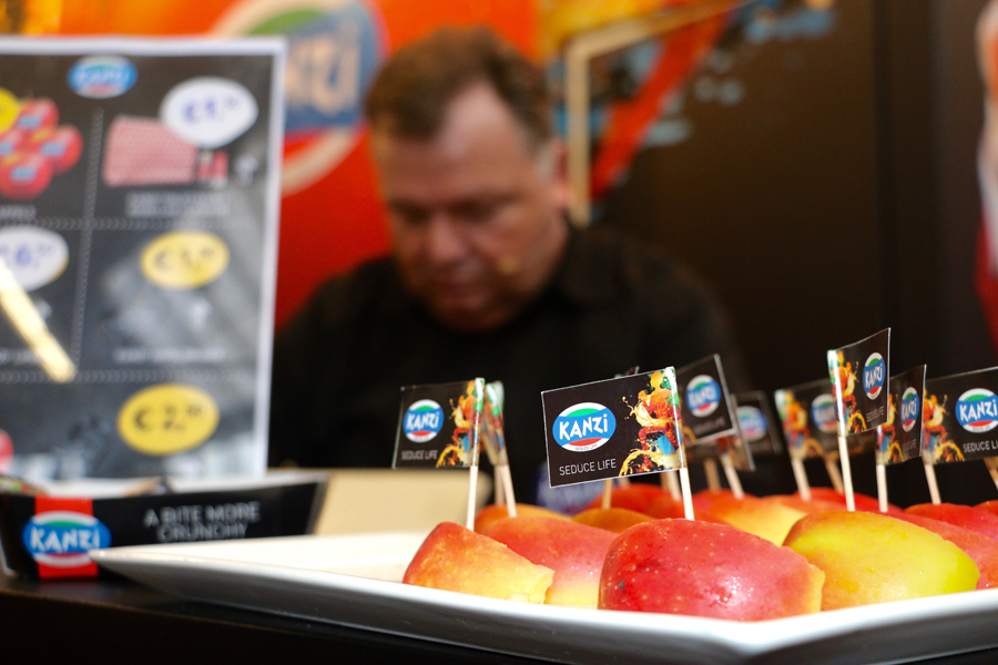 Tijdens de beurs waren de Kanzi appels in de aanbieding. Voor maar €1 kreeg je 4 appels! Wilde de consument er graag een appelsnijder bij? Dan kostte dit samen maar €2,50.