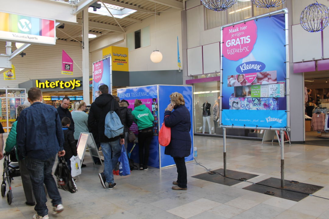 Consumenten konden op locatie GRATIS hun eigen tissue box maken in de Kleenex Tissuebox machine. Er kon gekozen worden uit 48 designs verdeeld over 6 thema’s, eventueel konden een foto en een tekst toegevoegd worden. De zelf gekozen/gemaakte tissuebox cover kwam direct uit de printer van de vendingmachine. Deze wordt om een tissuebox Kleenex Original gevouwen en als geheel aan de consument meegegeven. De box kon thuis een mooi plekje gegeven worden, zodat er altijd een tissue voorhanden is.