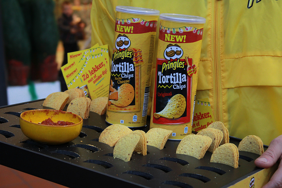 In opdracht van in samenwerking met Art of Branding heeft J.u.i.c.e. Promotions de sampling actie voor Pringles uitgevoerd. Pringles heeft dit jaar in Nederland de Pringles Tortilla Chips geïntroduceerd bij de Jumbo in drie smaken; Nacho Cheese, Original en Spicy Chilli.